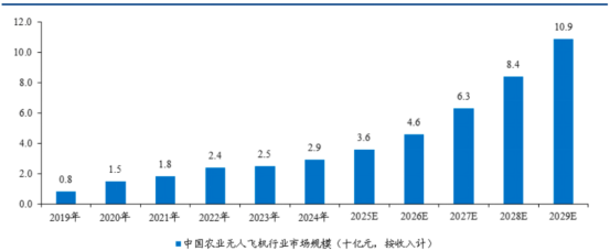 中国作为核心市场,表现更为亮眼。2019-2024 年市场规模从 8 亿元增长至 29 亿元,年均复合增长率 29.3%,预计 2029 年将突破 109 亿元。截至 2025 年上半年,全球农业无人机保有量已超 50 万架,其中中国占比超 50%,达 25 万架以上,远超美国约 5400 架的登记数量。随着技术成熟与价格下探,单位载重价格较十年前下降 90%,主流机型价格稳定在 3-4 万元,让普通农户也能负担得起这一 “新农具”。